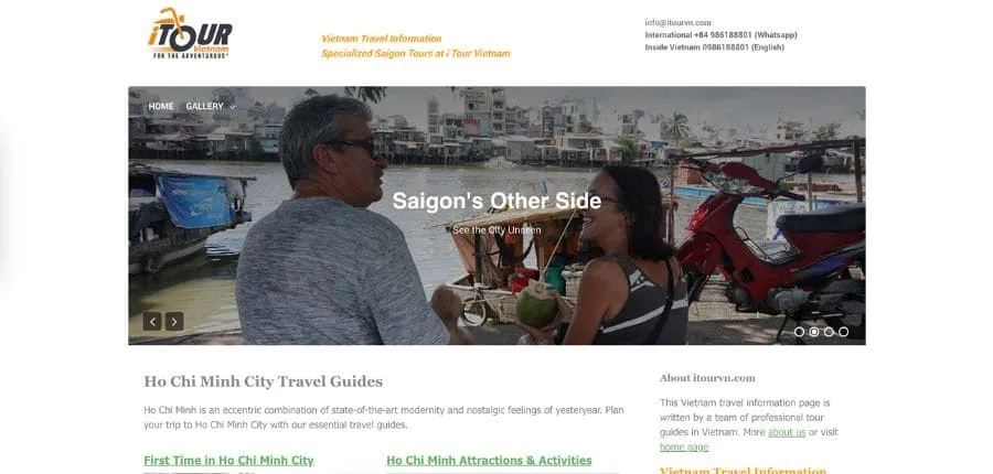 iTour Vietnam is a private tourism platform that offers unique experiences in Vietnam, especially in Ho Chi Minh City. Its tours include motorcycle tours of the city, night tours, food tours and excursions to landmarks such as the Cu Chi Tunnels.