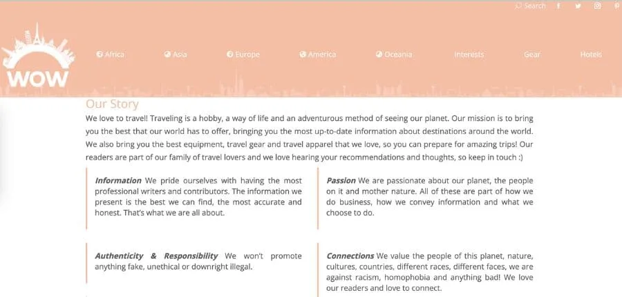 WOW Travel is a website that functions as an aggregator of trusted travel reviews. It offers information on destinations, hotels, travel products and useful tips for planning your next trip. It also includes articles on fashion and travel clothing, as well as guides to starting your own travel blog. The site focuses on providing authentic experiences and recommendations from real travelers.