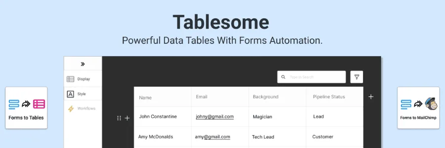 This plugin goes beyond table creation and export: it can also store contact form submissions and export data automatically. That makes it one of the most versatile options to enhance your site. With over 9,000 active downloads, users enjoy “magic tables” that work with filters, search and pagination. It also supports displaying posts, pages and products.