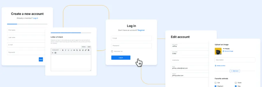 In short, you go from having a simple, basic form to building a fully customised user area tailored to your project.
