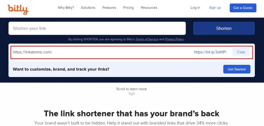 https://bit.ly/3oIttPiEsta herramienta es quizá la más longeva de la lista y la que más se ha utilizado durante años. Es un sitio gratuito en el que vas a poder generar URL que llamen la atención sin sospecha alguna. Además de acortar URL, Bit.ly te ofrece algunas funcionalidades que tienen que ver con el análisis de tráfico.