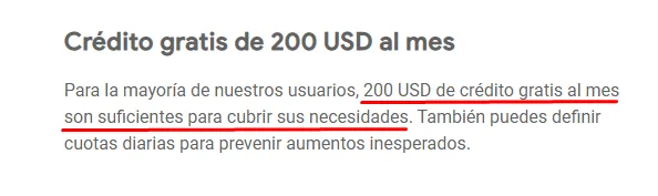 Parece que cada servicio de Google en Cloud Platform tiene precios diferentes ya que si accedemos a Maps Plataform nos indican que cada mes nos regalarán 200 USD, recalcando que esta cantidad es más que suficiente para la mayoría de usuarios.