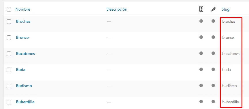 - Slug: Será el nombre que recibirá la url de la categoría.