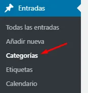 En Entradas > Categorías, podemos crear categorías nuevas para organizar los posts.