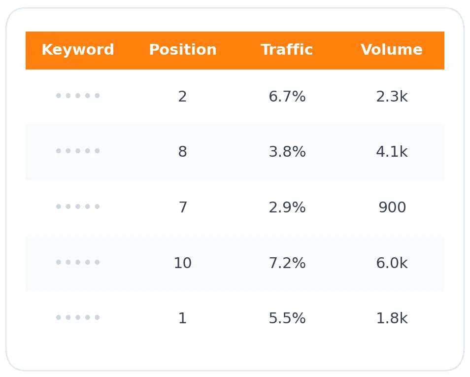 Este punto no solo muestra un listado básico de palabras clave, sino que proporciona un desglose completo de cada término, ideal tanto para estudiar el posicionamiento actual como para detectar nuevas oportunidades de crecimiento.