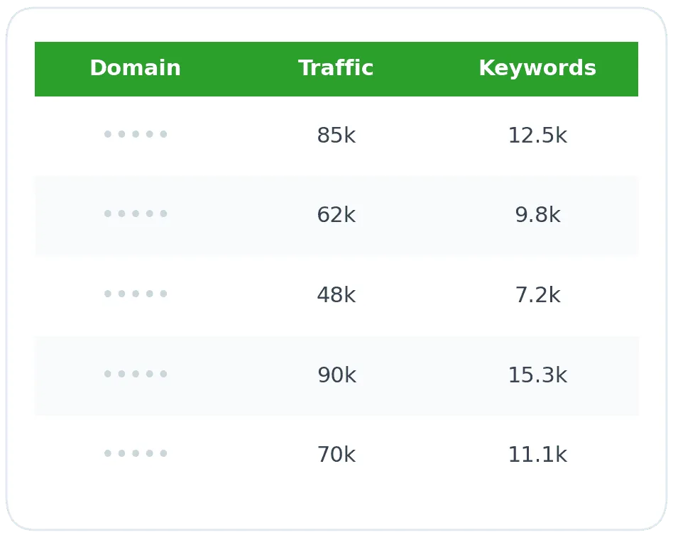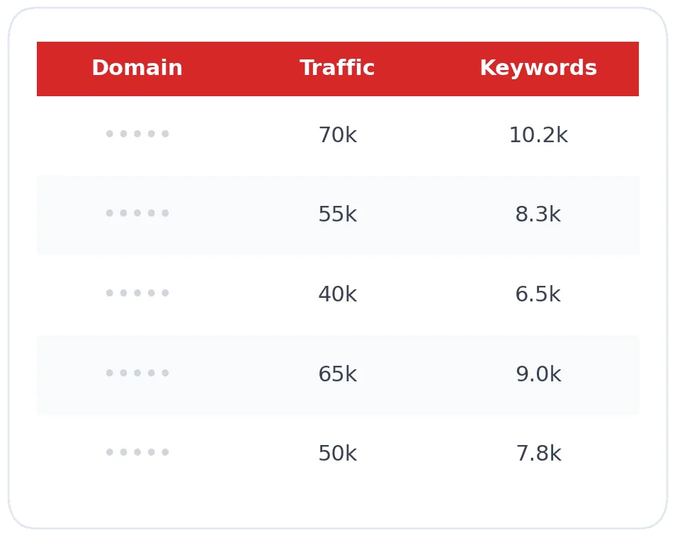 - Lista de dominios competidores: con datos de tráfico estimado, número de keywords posicionadas y visibilidad general.
