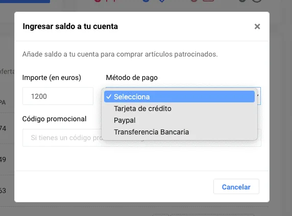 Puedes ingresar saldo en tu monedero de anunciante o desde la sección Monedero.