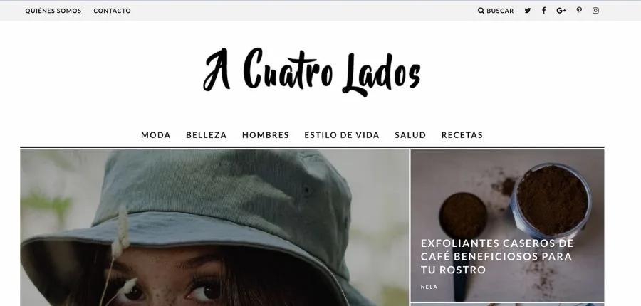 A Cuatro Lados es, probablemente, uno de los sitios web que hemos elegido con las mejores interfaces. Es decir: su blog es bellísimo, fácil de utilizar y claro. Encontrarás en cada categoría lo que estás buscando, como también sus redes sociales, contacto y una lupa para buscar lo que tengas en mente -o ya hayas leído y quiera releer.