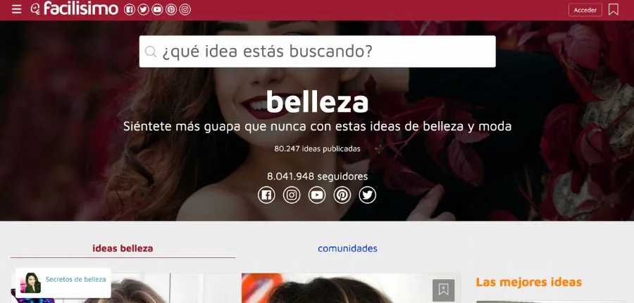 Como verán, no hay arista sin la que esta web se quede sin trabajar, y sin dudarlo apuntarás varios de sus tips para ponerlos en práctica. También encontrarás a Belleza Ideal en Facebook, Instagram, Pinterest, teniendo la posibilidad de compartir en tus redes sociales la publicación que te apetezca después de leerla, gracias a los atajos y botones con los que cuenta a su lado.