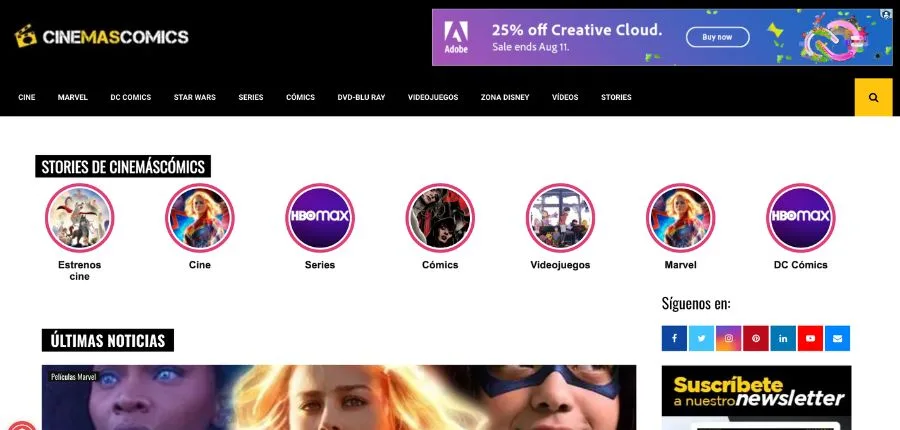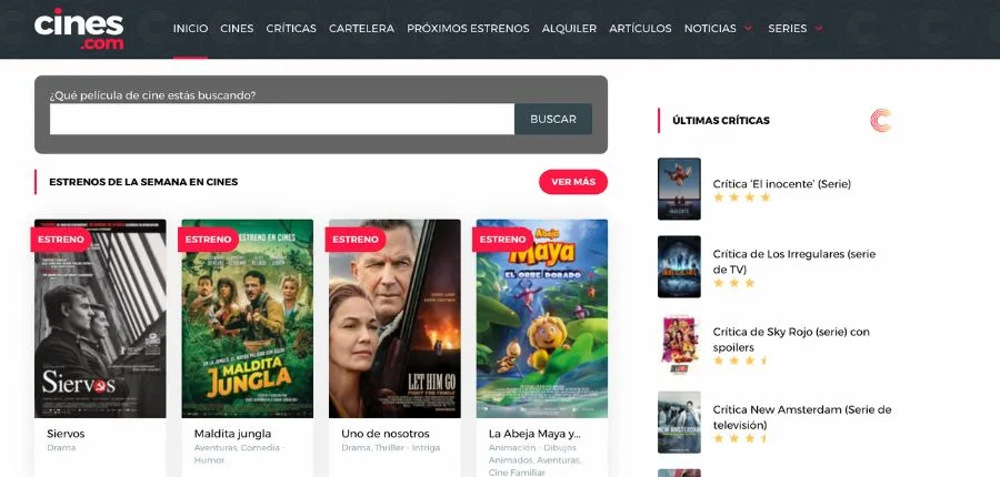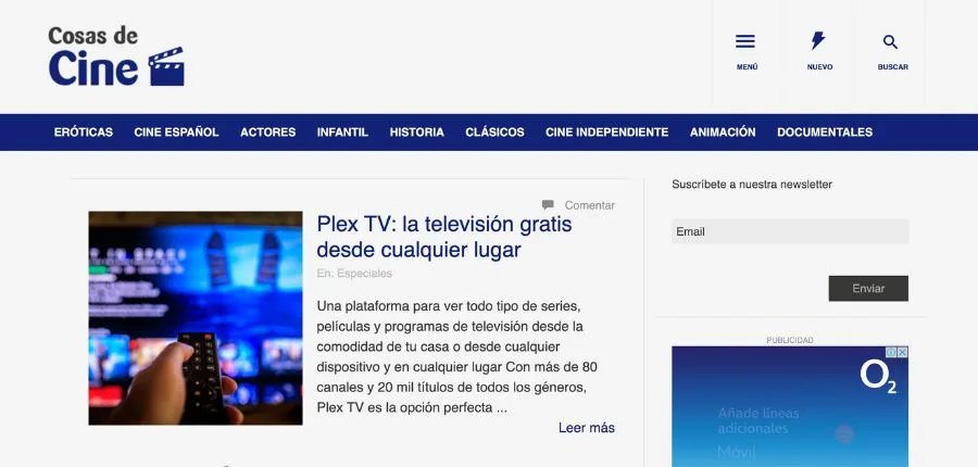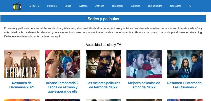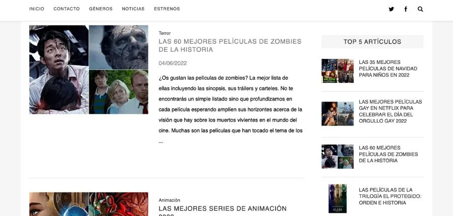 El mundo del cine se da cita en artículos que integran contenido de otras fuentes y noticias actualizadas, teniendo como prioridad lograr la fidelización de los visitantes a través de publicaciones que superen sus expectativas. Otro punto a favor es la posibilidad de compartir opiniones mediante su apartado de comentarios.