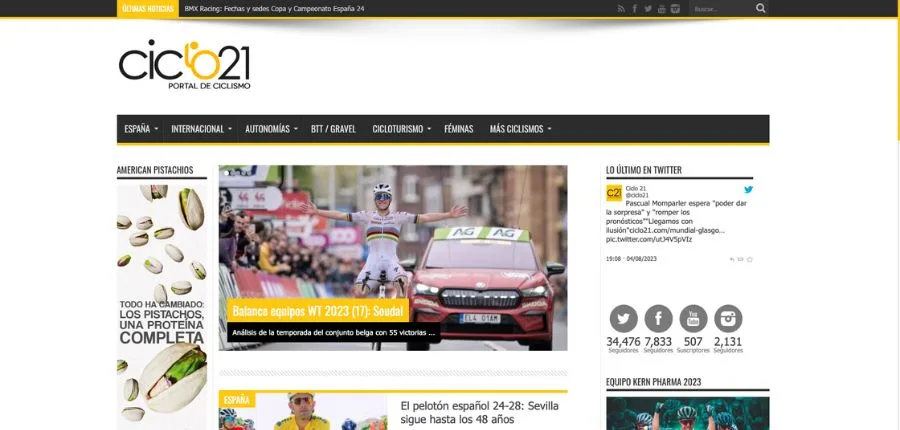 Ciclo21 es un blog en español dedicado al mundo del ciclismo. Ofrece cobertura extensa de las principales competiciones, entrevistas exclusivas, análisis de equipos y tecnología ciclista. Los aficionados encontrarán noticias actualizadas, reportajes detallados y opiniones expertas, convirtiendo a Ciclo21 en una fuente imprescindible para los amantes del ciclismo en todas sus facetas.