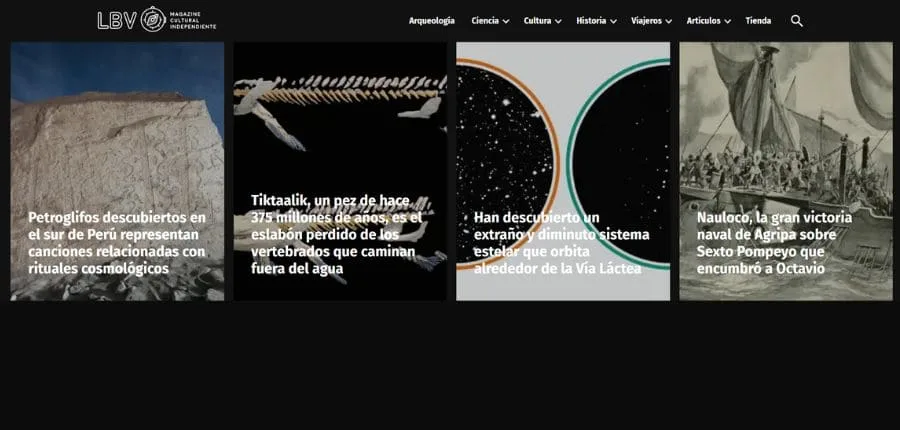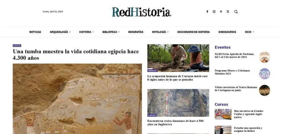 Este sitio abarca un amplio catálogo de información: actualidad, ciencia, naturaleza, tecnología, mascotas, entre otras secciones. Pero su apartado de historia es realmente lo que define a su audiencia. ¿La razón? Ofrece una amplia variedad de contenido histórico, abarcando desde curiosidades hasta eventos significativos, como la segunda guerra mundial, la historia de los Borgia e incluso el arte, la cultura y la sociedad de las ciudades históricas más importantes del mundo.