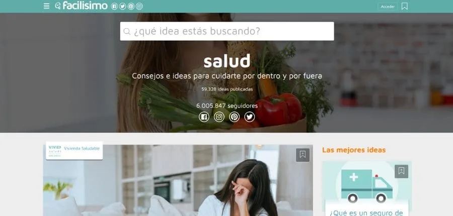 Facilísimo es uno de los blogs de salud y bienestar en español más seguidos; no en vano, el sitio tiene más de 6 millones de seguidores en sus redes sociales. Pero, ¿por qué es uno de los blogs más seguidos? Bueno, hay muchas razones, pero una de las más importantes es que Facilísimo ofrece consejos e ideas para cuidarte por dentro y por fuera, a través de artículos de investigación, noticias y entrevistas.