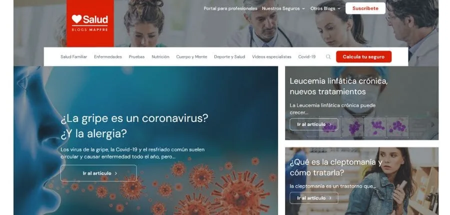 No podíamos comenzar nuestra lista de los mejores blogs de salud y bienestar en español sin Salud Mapfre. El portal no solo incluye secciones como Salud Familiar, Enfermedades, Pruebas o Nutrición, también aporta increíbles artículos para tratar temas como la diferencias entre ansiedad y depresión, ortodoncia, cómo poner fin a un dolor de muela, para qué sirven los distintos grupos de vitaminas, entre otros. Además, contarás con la asesoría de expertos en diferentes ramas de la medicina.