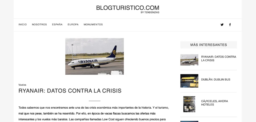 Con este blog de viajes descubrirás increíbles destinos para visitar, bien sea unas vacaciones en pareja o familiar. Cuenta con las guías más completas, reportajes escritos y fotográficos increíblemente atractivos y originales, sin dejar por fuera que también maneja toda la información de la industria turística de España y del resto del mundo.