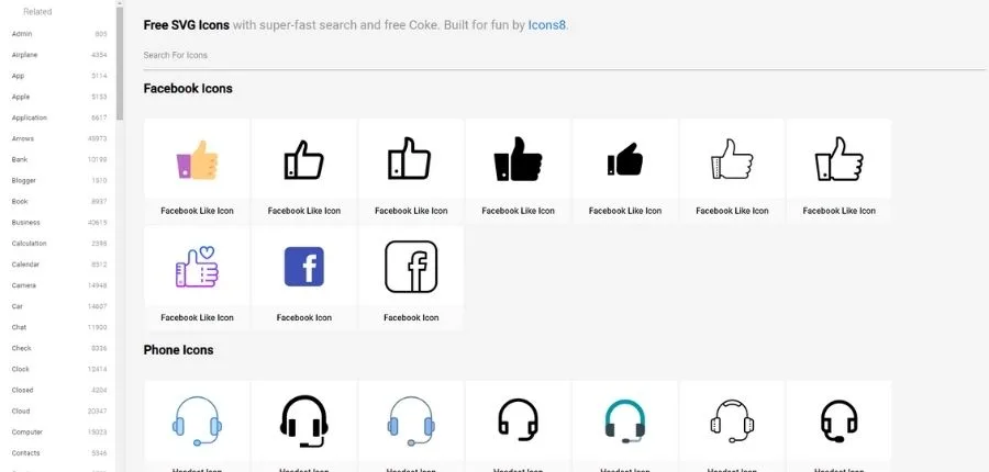 Se trata de un buscador de iconos gratis, cuya base de datos alberga más de 125 mil iconos listos para la descarga. Cuando estés allí, puedes descargar en formatos SVG y PNG en más de 32 estilos diferentes. Par ponerte un ejemplo, encontrarás iconos para Android de estilo “Material”. Así como también, hay iconos en Windows estilo “Modern”.