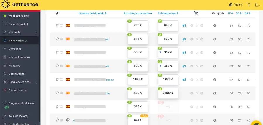 Getfluence es otra plataforma de link building. La única diferencia con Publisuites es que aunque cuenta con un gran número de medios digitales, están enfocados a un mercado más internacional, ya que es una plataforma francesa.