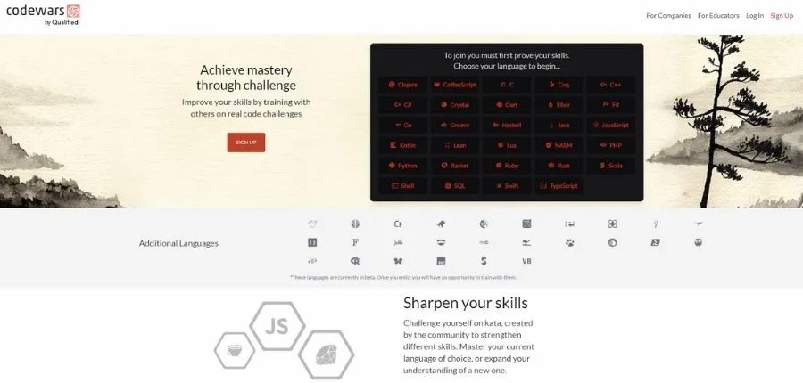 El método de enseñanza de la programación de Code Wars es a través de una serie de desafíos. Estos desafíos están inspirados en las artes marciales, así que cada uno de ellos ayudará a mejorar tus habilidades en programación que vayas adquiriendo a lo largo del curso.