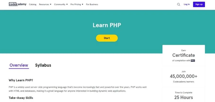 El sitio web Codeacademy es uno de los mejores sitios para aprender a programar gratis. Además, es uno de los más utilizados en internet. En sus estadísticas tienen a más de 24 millones de personas que han aprendido a programar en este sitio. En codeacademy todo es progresivo, ya que puedes optar por cursos para principiantes, hasta más avanzados.