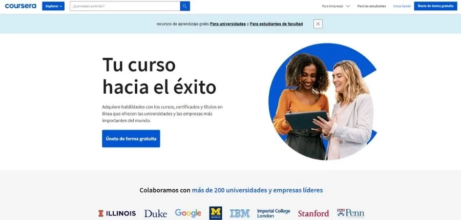 Los cursos que se imparten en Coursera son gratuitos, pero si quieres obtener una certificación, tienes que pagarla. Entre los lenguajes de programación se encuentran: Python, HTML y CSS, Programación IoT, Java, entre otros.