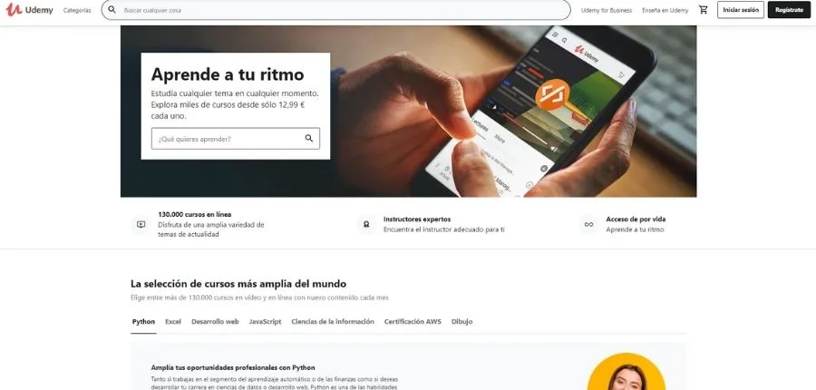 Se trata de un portal de educación, el cual te ofrece miles de cursos para aprender a programar rápidamente y de forma gratuita. De igual manera, encontrarás cursos pagos en Udemy, acompañados de cupones y ofertas especiales, las cuales puedes aprovechar. De igual manera, puedes encontrar versiones gratis de cursos que son de pago.