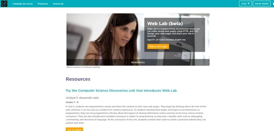 La página te da el poder de decidir el enfoque por el cual quieres aprender a programar. Desde tutoriales de 1 hora para aprender a hacerlo, hasta ver los cursos de forma más estructurada y directa. El catálogo de cursos está organizado por edades, que van desde los 12 hasta el nivel universitario propiamente dicho.