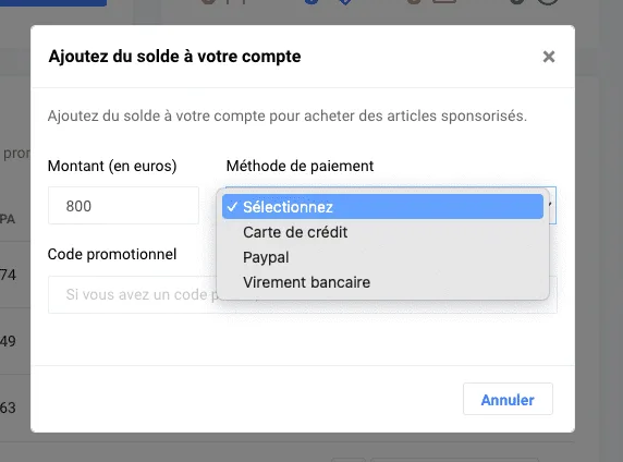 Tu peux insérer du solde dans ton portefeuille d’annonceur ou depuis le secteur ‘portefeuille’.