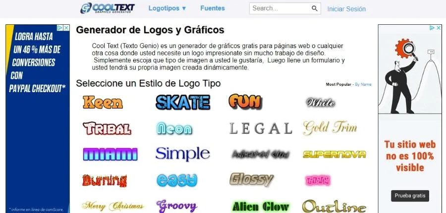 This service focuses on the creation of creative, bold and eye-catching texts. If you don’t want to spend a lot of time making a professional logo, you can choose from over 130 different themes and styles. It also has a database with over 1000 different typefaces to use as fonts for the logos you want to make.