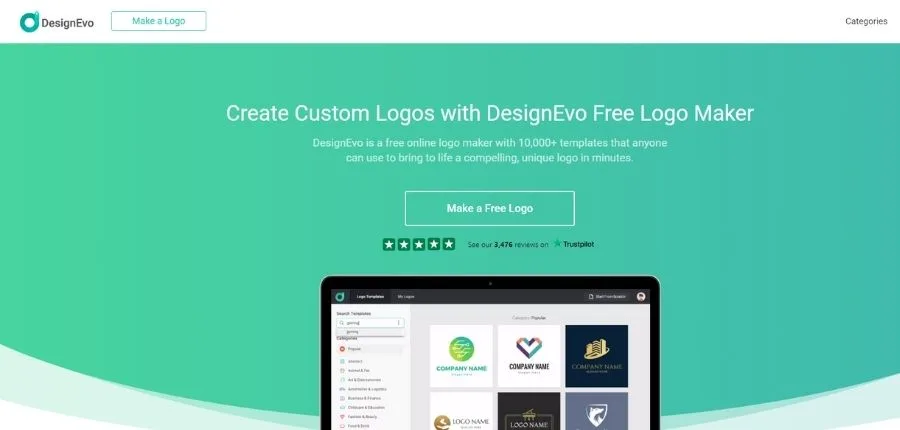 DesignEvo is one of the web platforms for making logos that has more templates to its credit, where you can choose from more than 5 thousand. In addition, you can make your logo for free. It is a very intuitive website, which guides you through the whole process of creating and designing your logo.