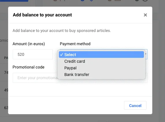 You need balance in your account to buy links in professional articles to increase the visibility and visits to your website.
