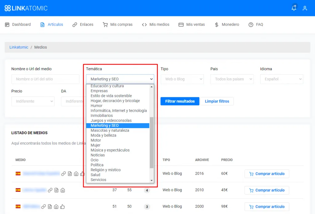 In Linkatomic we offer you 20.000 newspapers and blogs to improve your visibility on the internet.