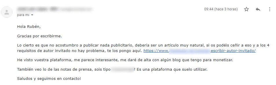 You just have to write to the contact medium they provide in a personalized way, take care of the tone of the message and, of course, talk about your company, blog or brand. All this highlighting the advantages and benefits that both sites would have to establish a collaboration with various articles through guest post.